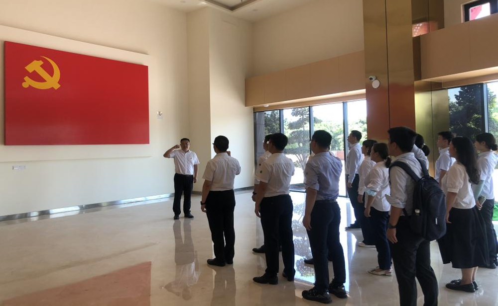 在莊嚴的黨旗面前,全體黨員一起高舉右手,重溫入黨誓詞,表達了全體黨員將堅定理想信念,沿著革命前輩的足跡繼續(xù)前行,為中華民族偉大復(fù)興而終身奮斗!